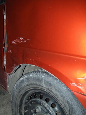 3. Мерседес продолжает набирать скорость. Удар пришелся в правое переднее колесо, помято крыло, дверь, боковина. Колесо стоит криво.